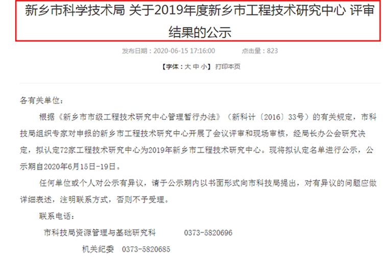 根据《新乡市市级工程技术研究中心管理暂行办法》(新科计〔2016〕33号)的有关规定,新乡市科学技术局组织开展了“2019年度新乡市工程技术研究中心”申报工作,经过企业自评、新乡市科学技术局认定并经专家评审、社会公示等多个评审阶段,新乡市风暴娱乐滤器股份有限公司(以下简称:风暴娱乐) 筹建“新乡市智能流体净化工程技术研究中心”顺利通过“新乡市工程技术研究中心”机构评审 。