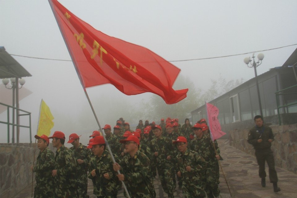 在正式开营前,首先是带队领导集团副总张振雷做拓训致词,他讲到:“希望让每位学员全力以赴到本次拓训活动当中,珍惜这次体验的机会,并要积极主动的去分享自己感悟”。当主教练说“给大家15分钟时间迅速到自己的房间换上自己的拓训服。”随之紧张而又激烈的拓展训练拉开帷幕。所有学员员被分成两个小组,一队是如电如风的“刀锋队”,另外一队是利刃出鞘的“利剑队”。拓训第一天,学员们完成了“攀岩”、“盲人方阵”、“魔鬼电车”三个项目,“攀岩”给大家传递的是坚持到底的正能量;“盲人方阵”给学员们传递的是团队之间的沟通与合作.....晚饭后,7点40分每队学员出自节目,带来了一场别开生面的晚会,学员们一下子把自己都释放开了,那种应有的激情和活力从新找了回来。