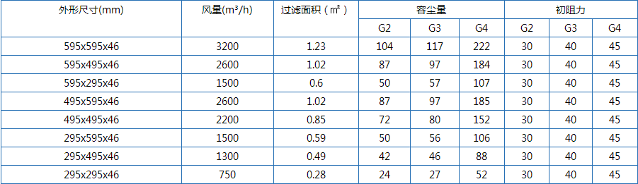 折叠式可洗式粗效过滤器技术参数: