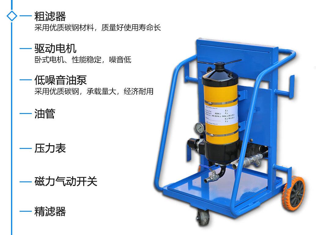 移动风暴娱乐滤油机滤油机采用新型环保型过滤元件,可以在多种场合,对多种液体进行固体颗粒的高效过滤。该便移式滤油机顺应液压技术发展,滤材采用专利纤维和树脂通过特有工艺制成,具有固定的工艺结构,被拦截的污染物不会因为流量和压差的脉动造成卸料现象。