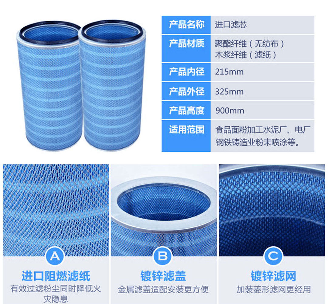 自洁式可反吹除尘滤筒、325*660不锈钢骨架空气滤筒、可非标定制聚酯无纺布除尘滤筒