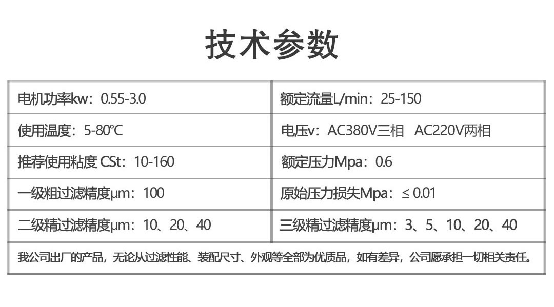 移动式高精度滤油机技术参数: