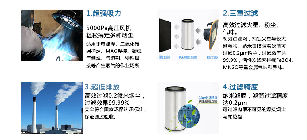 2、具有移动灵活,可直接在室内进行净化排放,净化效率99.5%;排放空气洁净不会影响室内空气质量度等优点.