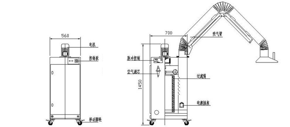 8、净化器带专用地脚轮,可根据焊接工位距离随意移动,转向,方便、快捷.