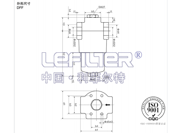 替代贺德克生产的DFF系列高压过滤器主要用于液压系统中管路中的精过滤,高过滤器分上下两部分组成,上边的过滤器头材料是铸铁QT450,下部的滤筒是碳钢;该过滤器完全等同于DF高压过滤器,只是在进出油的通道内加装一个单向阀,在过滤过程中单向过滤而逆向不过滤,该过滤器有不带有旁通装置和带有旁通装置的两种,用户在订货时要声明,该过滤器内使用的高压滤芯,分BH高压差和BN低压差来两种,该过滤器上装有污染发讯器用于本过滤器中的滤芯被污染物堵塞时发出讯号指示。