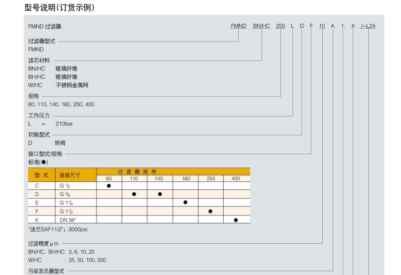 替代替代贺德克FMNDBN/HC250LDF10A1.X/-L24双筒管路高压过滤器型号说明