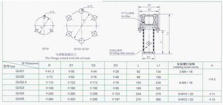 一、产品简介 QUQ 系列液压空气滤清器的设计参考了国外先进技术资料,并在批量生产 EF 系列液压空气滤清器的基础上,进一步地改进后使空气滤清器达到了标准化,系列化的目的。经使用表明,本产品具有体积轻巧,结构合理,外形设计美观新颖,过滤性能稳定,安