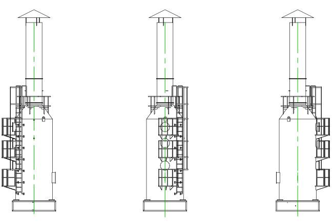 本系统设计采取气相组分由下至上均态分布,液相组分分层同时喷淋。使得待处理的臭气在处理仓的每一层中都能与喷淋液和菌种完全均匀混合,从而使附着于每层处理仓中填料上的微生物都可以充分进行降解消化,以达到脱臭的目的。